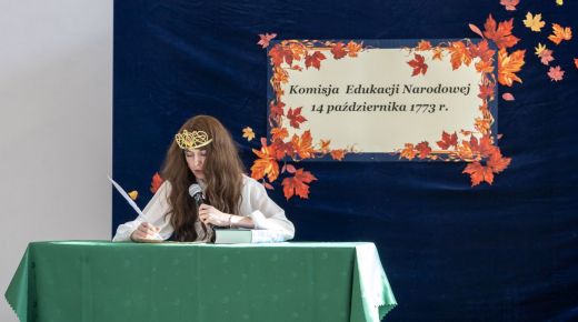 Następnie zaprezentowane przedstawienie w swej lekkiej formie przypomniało o historycznym tle kształtowania się pierwszego ministerstwa oświaty, a wystąpili w nim uczniowie klasy 4 I.