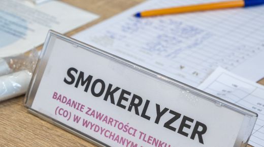 Uczniowie mieli także możliwość wykonania pomiaru zawartości tlenku węgla(IV) w wydychanym powietrzu przy użyciu specjalistycznych urządzeń (smokerlyzerów), co pozwoliło zobrazować wpływ palenia na organizm.