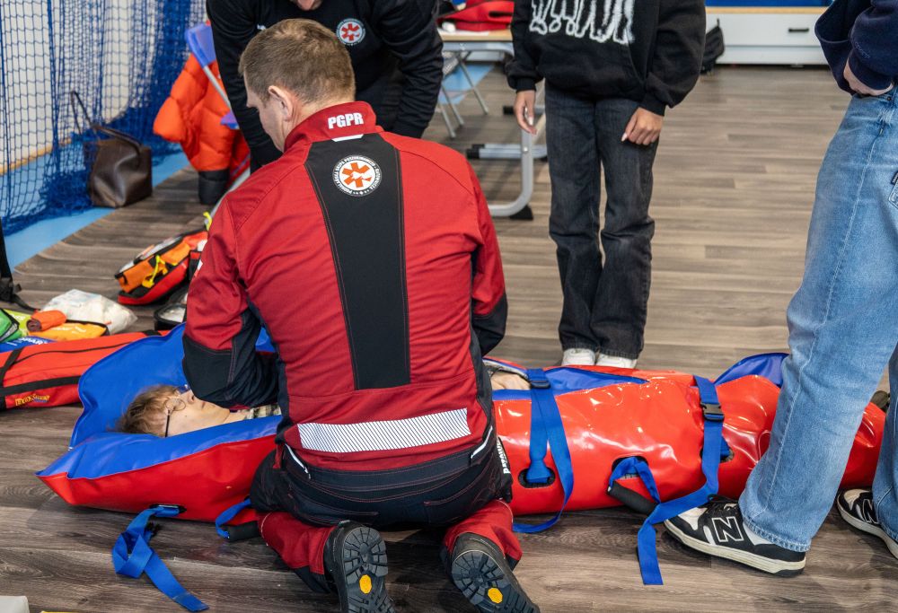 Dużym zainteresowaniem cieszyły się także pokazy Podhalańskiej Grupy Poszukiwawczo-Ratowniczej. Swoją obecnością zaszczycił nas prezes tej grupy pan Marcin Niewiarowski oraz jej członkowie panowie: Damian Jarząbek i Bogdan Zubek. Omówili oni i zaprezentowali procedury udzielania pierwszej oraz zapoznali uczniów z najnowszym sprzętem używanym podczas akcji ratowniczych.