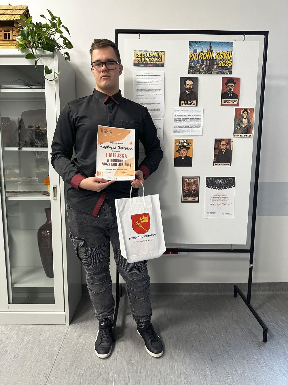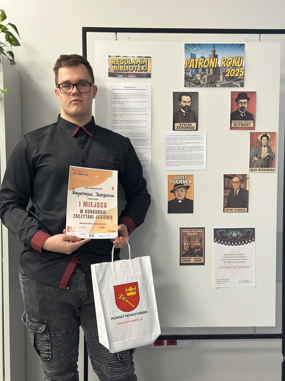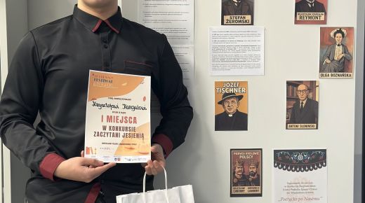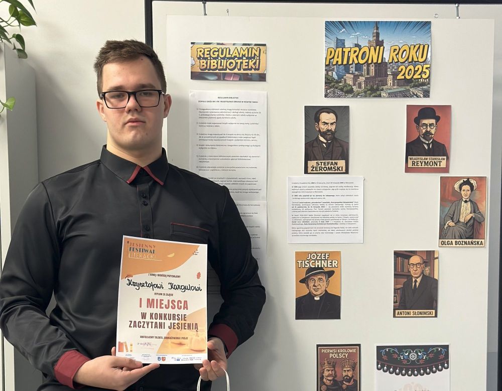 07.10.2025Uczeń z klasy 4 PI - Krzysztof Kargul - zdobył I miejsce w konkursie Zaczytani jesienią, organizowanym w ramach Jesiennego Festiwalu Literackiego przez Miejską Bibliotekę Publiczną w Nowym Targu.